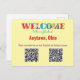 Bienvenido a nuevos amigos y vecinos con esta brillante postal que incluye códigos QR vinculados a tus grupos locales de Facebook e Instagram. Los códigos QR pueden tener vínculos a cualquier URL que elija.