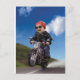 Bebé vestido de motociclista, apuntando una bicicleta en una motocicleta