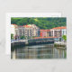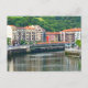 Bilbao. Paisaje urbano con río. Taza de viaje. España. Provincia de Vizcaya. País Vasco. Casas. Muelle del río. Árboles. Foto.