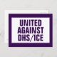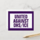 United against the Trump Administration's anti-Constitutional DHS, including ICE , and the destruction they are doing to our country. ICE, with the full force of the US government's executive branch and a bunch of spineless weasels in Congress, are assaulting, kidnapping and trafficking people, and worse. Bipartisan dark purple. Design description: This is a text-based design with limited decorative elements. The text reads, "United against DHS/ICE" in all caps dark purple sans serif letters on a white background in the center of the design space. The only decorative element is a dark purple border, with a light purple inside edge.