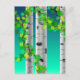 La crujiente corteza blanca del abedul con hojas verde primavera sobre un vibrante gradiente de fondo verde azulado-azul. Ilustracion digital.