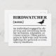 Minimal typographic design defining a birdwatcher. Ideal for those who love observing and identifying wild birds in nature, from recreation to citizen science.