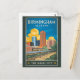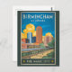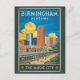 Diseño de viaje vector retro de Birmingham. Birmingham es un importante centro industrial del sur. También alberga una vibrante escena cultural, con museos y galerías de arte de primera clase, festivales urbanos y el distrito industrial de Digbeth.