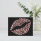 Crea tu propia tarjeta postal de agradecimiento con un beso con lápiz labial rojo rojo oscuro de leopardo oscuro rosa rosado. Un pintalabios rosa sobre una huella de beso con un fondo negro. Personalizar el color de fondo. Añade tu propio mensaje de texto personalizado.