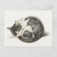 Vintage black and white pencil drawing of a cute curled up sleeping cat. Illustration by Dutch artist Jean Bernard (1825).