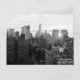 Black and White Postcard of New York City at Sunset. Freedom Tower is in the background as the sun drops behind the buildings of lower Manhattan.