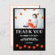 Foto de cumpleaños de Black Basketball Gracias Postcard. Cute Black y Naranja Sports Basketball Birthday Gracias Postcard con una foto. Temática del baloncesto gracias postal para los niños - chica y niño. El diseño tiene baloncesto y banderas de racimo en colores naranja y blanco. El fondo es negro. Personalice la tarjeta postal con el nombre de su hijo y su foto. También puedes cambiar el mensaje de agradecimiento y escribir el tuyo propio. Ideal para un niño o un chica que ama el baloncesto y otros deportes.