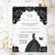 Esta elegante y glamorosa y dulce invitación a los dieciséis años de vida cuenta con una hermosa princesa con el pelo de morena en un vestido de bolas negras. El texto combina el guión manuscrito y las fuentes sans serif modernas para un aspecto elegante y sofisticado. Los arreglos florales, mariposa y confitis de plata crean la combinación perfecta entre rústico y moda. Gráficos de www.etsy.com/uk/shop/SunflowerDayLove