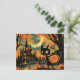 Postal Black Cat with Pumpkin Bucket by the Castle