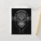 Este elaborado diseño de cráneo de azucar DJ está decorado con complejos remolinos y patrones de puntos. Los audífonos se sientan encima del cráneo con dos cables colgando debajo. Esta agresiva imagen inspirada en el Día de los Muertos es perfecta para músicos y amantes de la música.