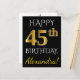 Postal Black, Faux Gold 45th Birthday + Custom Name