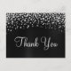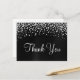 Crea tu propia tarjeta de agradecimiento con confeti de diamantes plateados y foil de satén negro ombre falso con efecto de imagen gráfica impresa con lámina y estrás. Personaliza la caligrafía moderna y el mensaje de agradecimiento. Aspecto de satén falso con gradiente gris oscuro y negro.