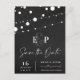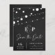 Black White String Luces Monograma Boda Guardar La Invitación De Fecha . Enviar esta elegante Boda de las luces de las cuerdas de Chalkboard Guardar la invitación magnética de la fecha a la familia y amigos. Una manera perfecta de anunciar al boda. Puede ser totalmente personalizado cambiando los nombres de Novia y Groom , Fecha boda . El diseño tiene un fondo de pizarra falso con luces de cuerda. Para cualquier personalización adicional, no dude en ponerse en contacto conmigo en mypaperlove2021@gmail.com