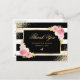 Elegante floral gracias a postal con flores color de agua rosa y verde dorado sobre un fondo rayado negro y blanco. Elementos coincidentes disponibles.