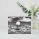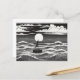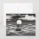 Postal Black & White Lonely Sailboat Moon Waves