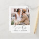 Foto moderna y elegante Guardar la tarjeta de Boda de fecha. La tarjeta de invitación para guardar la fecha incluye tipografía y moda con letras blancas y un diseño simple sobre un fondo blanco al que se puede añadir la imagen de fotografía de compromiso personalizada.