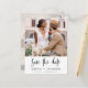 Foto moderna y elegante Guardar la tarjeta de Boda de fecha. La tarjeta de invitación para guardar la fecha incluye tipografía y moda con letras blancas y un diseño simple sobre un fondo blanco al que se puede añadir la imagen de fotografía de compromiso personalizada.
