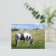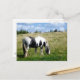 Un caballo/un potro blancos y negros hermosos que pasta en la parte inferior de una colina herbosa. En la cima de la colina usted puede ver una ojeada de la humanidad. Las postales de la fotografía del caballo y del potro pueden hacer el gran arte miniatura de la pared para los amantes del caballo y del potro. ¡Apenas hágalas estallar en un marco! ¡Recójalos todos! © Lisa Marie Robinson de la fotografía