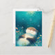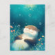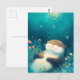 This enchanting postcard features a sweet, chubby otter floating with a contented smile and closed eyes. The artwork is rendered in a soft, ethereal watercolor style with a deep teal and turquoise palette. Shimmering light orbs descend from the surface like magical bubbles, while delicate pink and yellow wildflowers bloom along the bottom. The tranquil atmosphere and painterly textures create a sense of pure serenity. This postcard is a perfect way to send a note of peace, a gentle "thinking of you," or a touch of aquatic magic to a friend.
