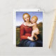 Pintura antigua en el panel de madera - Origin Italy de Raffaello Nicolini Cowper. El arte vintage representa a Mary con el Salvador como rubia sentada junto al campo italiano como telón de fondo.