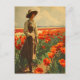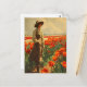 La tarjeta postal representa a una mujer de pie elegante en medio de un vibrante mar de tulipanes. Su atuendo resuena con la moda de la época, y los ricos matices del campo crean un caleidoscopio de colores. El ilustracion meticuloso captura un momento de belleza intemporal y el encanto de los tulipanes florecientes.