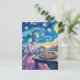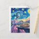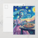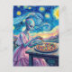 Postal Blue Alien in Pink Dress Eats Pizza Faux Van Gogh
