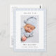 Simple grey blue and white Gingham border baby boy Thank you Birth announcement postcard with photo and birth stats.