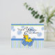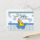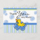 Blue Bubble Ducky Baby Shower Gracias a las postales Adorable baby ducha gracias a las notas mostrando feliz pato pequeño con burbujas azules y acentos de fondo a rayas. Texto personalizado. ¡Un gran regalo de ducha! Pegatinas coordinados, invitaciones a duchas de bebé, sellos postales y botones de mantenimiento también disponibles PinkInkArt original!