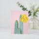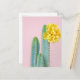 Este trío de cactus azules se sienta en un fondo rosado con una flor amarilla.