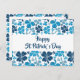 Blue Clover Shamrock Pattern St. Patrick's Day Postcard. Diseño moderno de San Patricio con shamrock azul dibujado a mano, patrón de trébol.