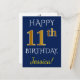 Postal Blue, Faux Gold 11th Birthday + Custom Name