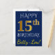 Postal Blue, Faux Gold 15th Birthday + Custom Name