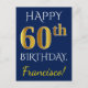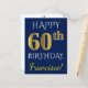 Este sencillo y personalizado diseño de postal de cumpleaños incluye el mensaje "FELIZ CUMPLEAÑOS 60", con el "60" con un falso aspecto dorado. En la parte delantera también hay un nombre personalizado y un fondo azul. En la parte posterior aparece un mensaje de bienvenida de cumpleaños de personalizable, junto con la dirección de personalizable del destinatario de la tarjeta postal de cumpleaños. Podría enviarse a alguien que esté celebrando su sexagésimo cumpleaños. [~Z0000074]
