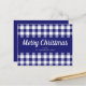 Postal Blue Gingham Plaid Script Feliz Navidad