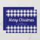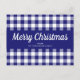 Blue Gingham Plaid Script Merry Christmas Postcard.