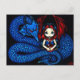 Blue Serpent - un llamativo dragón de cuero cabelludo azul brillante y su amigo hada. Mi propia pintura acrílica original.