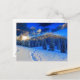 El sol está saliendo a la luz sobre los árboles cubiertos de nieve