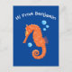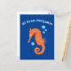 Este lindo caballito de mar está navegando por las corrientes oceánicas. Dibujado en un divertido estilo de ilustracion personalizado.