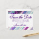 Postal Boda abstracta púrpura y acuática salva la fecha