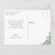 Elegante caligrafía "Agradecimiento" en blanco, tarjeta postal de agradecimiento de foto de boda. La parte trasera de la tarjeta presenta un arreglo de acuarela de follaje del bosque.