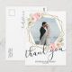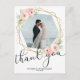 Tarjeta Postal Boda Agradecimiento Rubor Floral Oro Hoja Geométrico