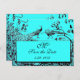 Postal BODA AMOR AVES MONOGRAM azul negro y blanco