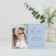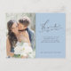 Las tarjetas de agradecimiento de los bodas modernos con tu foto favorita del día de la boda. Estas postales de agradecimiento económicas están en un diseño azul y gris de escritura. Los colores se pueden cambiar para que coincidan con los colores de tu foto o boda - contáctame con tus peticiones.