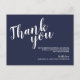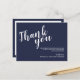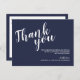 Boda azul de la Marina de Guerra Moderna Gracias Postcard con título en alfabeto blanco moderno con detalles en sans modernos y blanco tipo de letra serif sobre fondo azul marino.