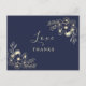 Expresar su gratitud con estilo con este elegante boda azul marino gracias postal, adornado con delicados ilustraciones florales dorados y escritura romántica. Una manera perfecta de agradecer a sus invitados por ser parte de su celebración y compartir su historia de amor.