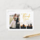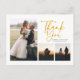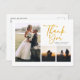 Una manera grandiosa y reflexiva de agradecer a tus amigos, familia y compañeros de trabajo que te honraron su presencia en tu día de boda con esta moderna foto tarjetas de agradecimiento con el efecto oro con letras de guion "gracias" Fotos en la parte delantera y en la inversa de esta carta