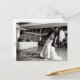 Boda clásico gracias postal que incluye una foto en el frente y en la parte posterior, "Gracias" en una elegante letra de escritura blanca, y mensaje de agradecimiento de texto personal.