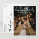 Tarjeta postal de agradecimiento de boda de gracias y amor de guión manuscrito moderno de moda