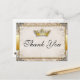 Boda De Cuentos De Fario Gracias Postcard. Con colores reales de regalías de oro y plata y perlescentes. Este elegante y sofisticado boda de cuento de hadas gracias postal es genial para cualquier boda temático o boda de corbata negra. Con un toque de elegancia y encanto, enviarás saludos a tus huéspedes con un estilo completo con esta postal de boda de cuento de hadas gracias a todos tus huéspedes. Tiene perlas falsas y diamantes en las flores que hay en las esquinas. Una corona real se sienta en la parte inferior derecha adornada con oro y joyas. Un ilustracion de fibra se sienta sobre un fondo vintage y un borde ornamentado sostiene el papel ornamentado texturado en el medio. Los productos que coincidan pueden encontrarse en la sección boda de mi tienda.