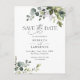 Esta elegante y personalizable Save the Date Postcard presenta hojas de color agua mezcladas con verdor, junto con una elegante fuente de sans serif y delicados en negro, con un monograma en la parte posterior. Elementos coincidentes disponibles.
